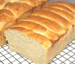 Remove pans from the oven and run a knife around the edges. Then release loaves from pan and turn upright on rack to cool. Handle carefully, because the places where the dough joins is fragile. Should you want a more toasty loaf, place back in oven (without pan) for 5 to 8 minutes.