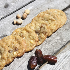When I do monthly donations, my goal is to present something tasty and unique. First, I had to take inventory of what I had on hand. There were two items I previously had bought in bulk-macadamias and dates. That is how I arrived at these MacDate cookies. They are a crispy, flat cookie that has chopped dates, white chocolate and salted macadamia nuts. These cookies give you something healthy, salty and sweet.