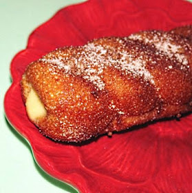 For assembly, take a long knife and a cut a slit in the donut all the way through or take a core out of the donut half way down on each end. Either way is a personal preference. Then take a piping bag with a large pastry tip and fill with cream. Stick tip into one end of donut and fill halfway with cream. Then repeat on other end. Continue this process for all of the donuts.