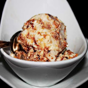 This recipe comes from a resource book that is packed with lots of frosty desserts, but this one did sound interesting. I have seen a lot of recipes that use different dairy products in ice cream but the the choice of cream cheese is still the most appealing.