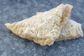 In the center of each square, place one level tsp of filling. Then moisten edges of squares, fold dough over and seal edges with a fork. Brush tops with beaten egg. Place each cookie one inch apart on an ungreased baking sheets and bake for 10-12 minutes or until edges are golden brown. Place cookies on wire rack to cool and dust with confectioners sugar. Continue this process until all cookies are made and baked.