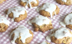 Take cooled cookies off of rack and place on wax paper. Then drizzle glaze over the top of the cookies and let set until glaze hardens. Once glaze is hard, you can store or serve.