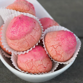 These little bon bons are a great cookie that lends themselves to a variety of ways to make them. The above type is the plain vanilla ones filled with a candied cherry. The recipe has instructions to make chocolate and even penuche ones and suggests various fillings: nuts, dates, chocolate pieces. However, with todays array of chips,candy pieces and sugared nuts, the options are many. I am thinking that the chocolate ones could be filled with a peanut butter chip or andes mint chips. I do have plans to play with the variety a little more.