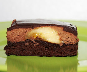 If you did not use a collar, trim the edges where the mousse layer was uneven, using a hot, wet knife. Use that same method for cutting servings. Serve chilled.