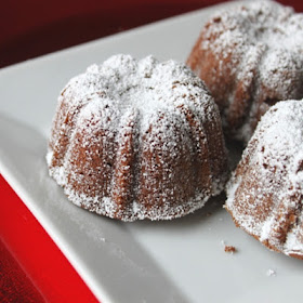 With all the holidays coming up, I am looking for more individualized desserts instead of big pies or cakes. This particular recipe is actually for a 12 cup bundt cake, but I halved the recipe and made these little cakes.