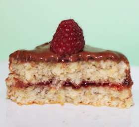 I really did like how it turned out. It was a dainty, nutty cake and the raspberry was a great pairing of flavor. The only issues I had was that I should have ground the hazelnuts more and the chocolate ganache frosting took a long time to set up. Next time, I may use chocolate instead of chocolate chips, which may help with the consistency. Also, note that this recipe recommends using two 9 inch square baking pans.