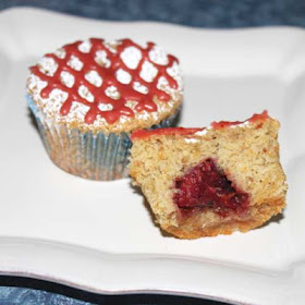 Once cupcakes are cool, dust with powdered sugar and frost, making a design on top of the cupcake with the icing.