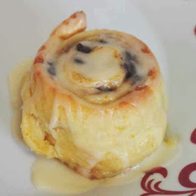 For the glaze, sift the powdered sugar into a bowl. Stir in 1 tbs of orange juice. Continue to add orange juice until mixture reaches desired consistency. Spread or drizzle glaze over the top of the rolls. These can be served warm or at room temperature.