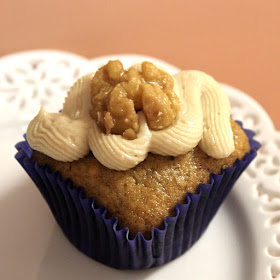 Let's face it, banana-nut anything is always a welcome treat. However, it is very difficult to achieve a cake like quality when using them in baking. That is why I refer to these as muffins instead of cupcakes. They are not as dense as banana bread, but they do not have the lightness of cupcakes either.